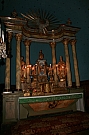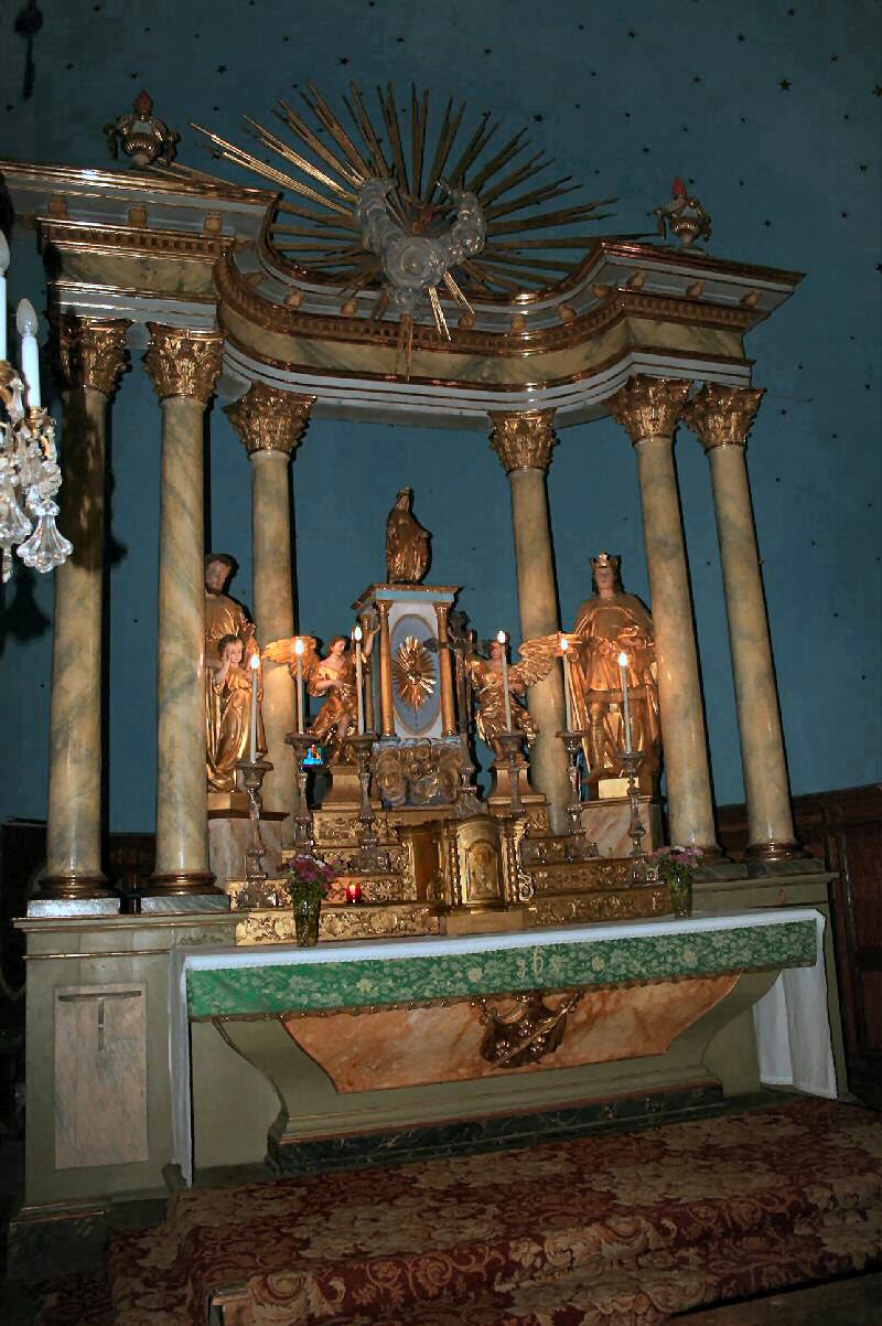 en dents d'engrenages. L'intérieur n'est pas visible puisque l'église